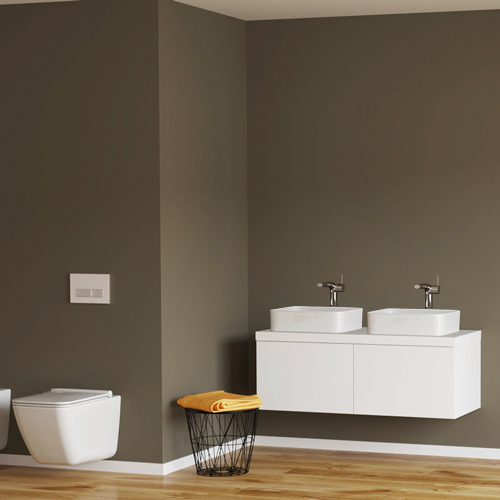 Saubere Optik mit genügend Raum für Ihre Sachen und einen Aufsatzwaschtisch, das bringt Ihnen die Kombination von Waschtischplatte mit zwei nebeneinander gelegten Schubladen in verschiedensten Höhen mit perfekter Dämpfung, die sehr modern und elegant wirken.