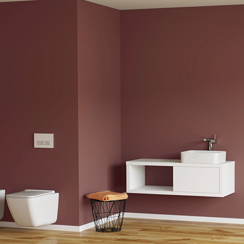 Unser designer wandhängender Waschtischunterschrank hat eine Schublade und eine Nische, die nebeneinander liegen. Der Waschtisch befindet sich rechts über der Schublade, mit einer Ablagefläche links. Auf Wunsch ist dieser Schrank in vielen verschidenen Optiken und Farben erwerbbar, zum Beispiel in Stein- oder Massivholzoptik.