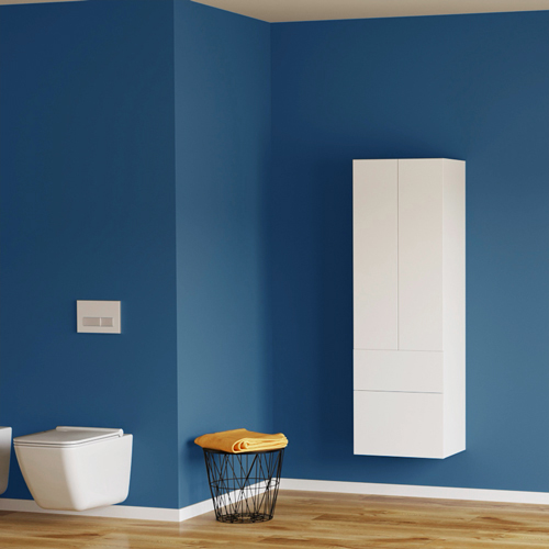 Der wandhängende 2-türige Zusatzschrank mit 2 vollgedämpften Schubladen mit Griffe nach Ihrer Wahl bietet genügend Stauraum und bringt in Ihr Badezimmer schöne Ordnung.